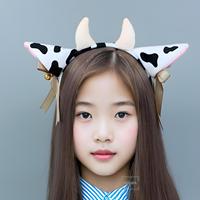 E0027 Serre-tête à oreilles de vache Cerceau à poils d'animaux avec nœud Ruban Cloche Serre-tête à oreilles de vache et cornes Accessoire pour déguisement