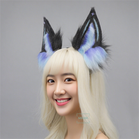 E0077 آذان الذئب واقعية عقال أفخم الحيوان الأذن غطاء رأس اليدوية الشفق الأزرق آذان الثعلب عقال تأثيري الدعامة